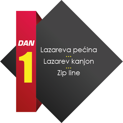 Dnevnu avanturu završavamo sa dozom adrenalina...na ZIP line-u preko dela Lazarevog kanjona. Dužine ZIP line-a je oko 220m i predstavlja pravu atrakciju za ljubitelje ekstremnih sportova.