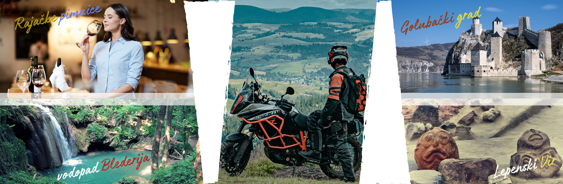 Okupljanje i početak naše avanture na dva točka je u gradu Zaječaru, domaćinu Gitarijade, najstarijeg rok festivala u Srbiji. Prvi deo puta, od oko 60km nas vodi do sela Rajac i do poznatih Rajačkih pimnica. Pimnice su, zapravo, naselje napravljeno za proizvodnju i skladištenje vina. Naravno, u pimnicama ćemo i da probamo po neko vino domaćih proizvođača...ali ne previše, jer nas put tek očekuje ;) Nakon ovog, Dionisovog iskustva nastavljamo put kroz istočnu Srbiju sve do vodopada Blederija, skrivenog u oazi prirode i mira. Sledeća stanica nam je obala Dunava i Kladovo.