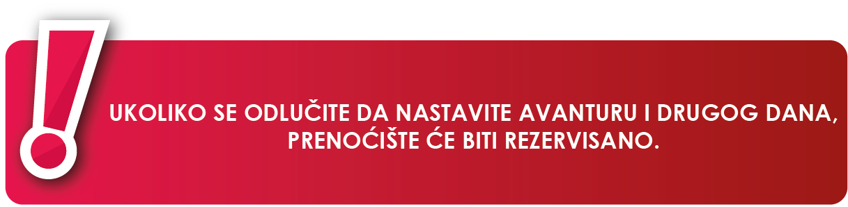 GO Discover agencija će u slučaju višednevnih avantura da vam rezerviše smeštaj po želji, koji ćete da platite na licu mesta. Cena smeštaja ne ulazi u cenu ture koju vam nudi naša agencija. |